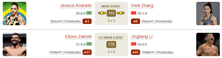 여성 스트로급 타이틀전 장웨일리 vs 요안나 옌드레이칙.